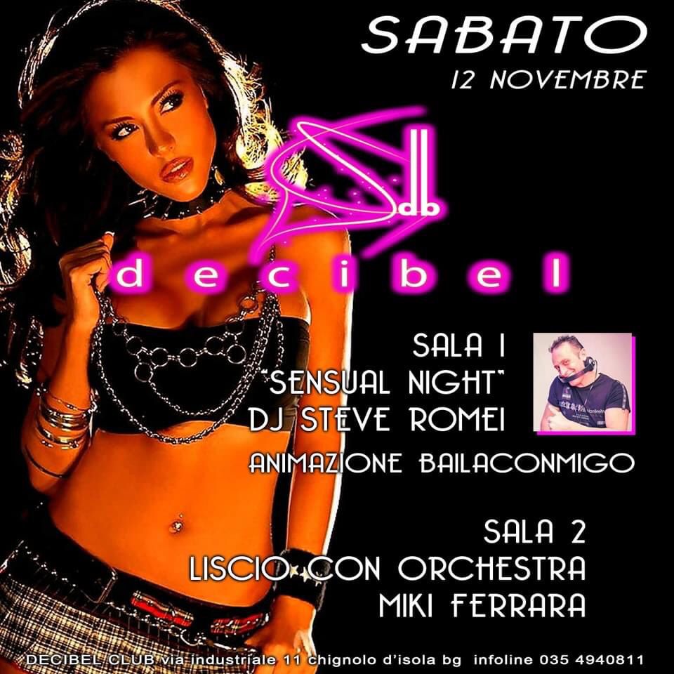 Al Decibel Club, ogni sabato sera si potrà vivere una sensual night. Non per nulla, al Decibel Club ogni sabato sera il divertimento è doppio. Difatti, nella sala numero 1 del Decibel Club si potrà dedicarsi al ballo latino, una esuberante serata miscelata dal DJ Steve Romei e animata da Baila Conmigo.