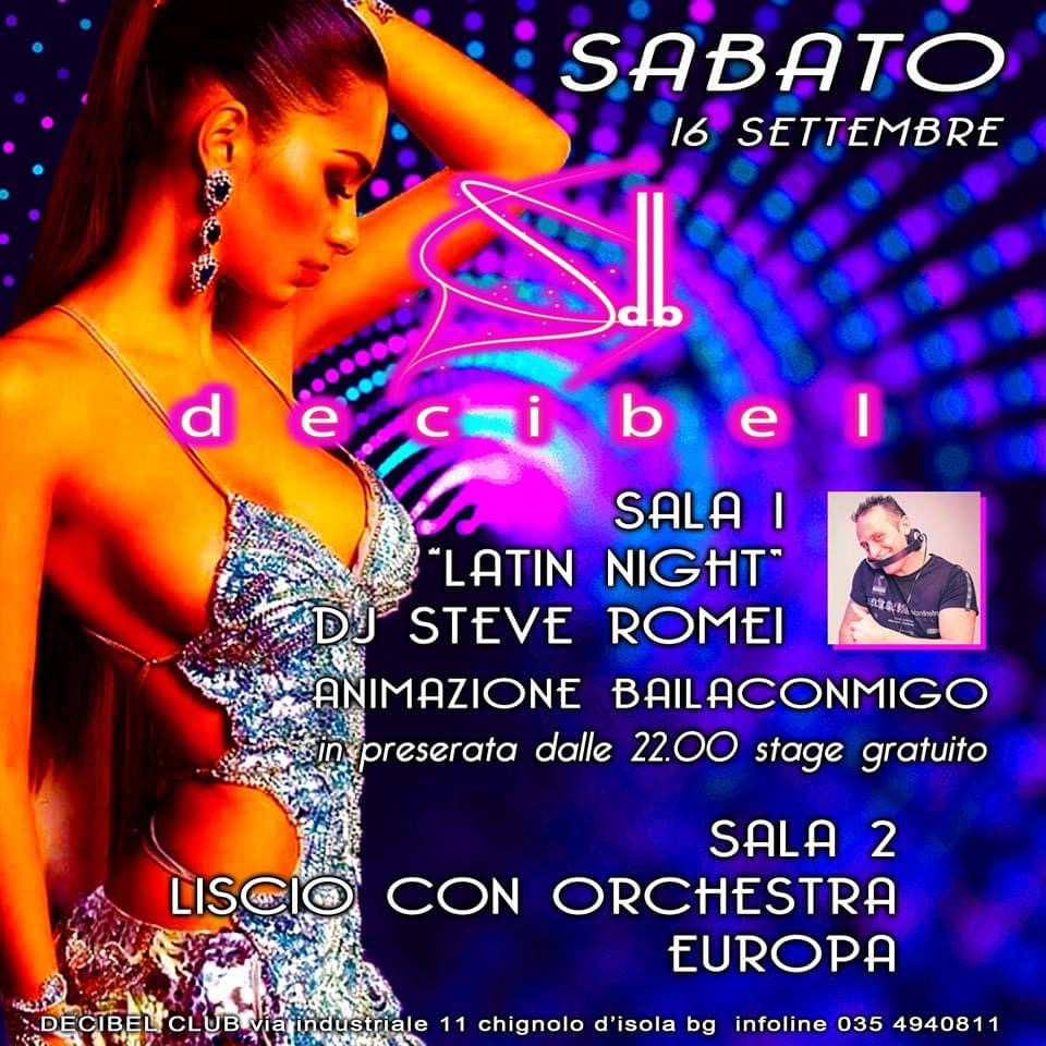 Al Decibel Club, ogni sabato sera si potrà vivere una sensual night. Non per nulla, al Decibel Club ogni sabato sera il divertimento è doppio. Difatti, nella sala numero 1 del Decibel Club si potrà dedicarsi al ballo latino, una esuberante serata miscelata dal DJ Steve Romei e animata da Baila Conmigo.